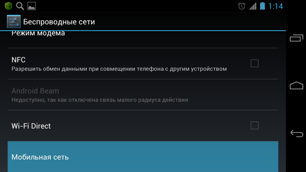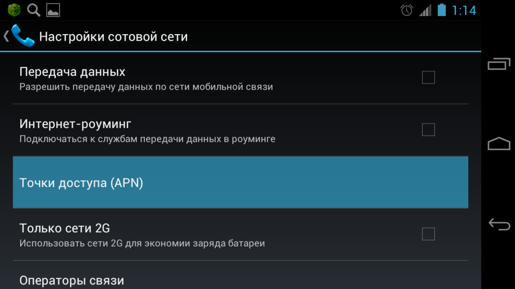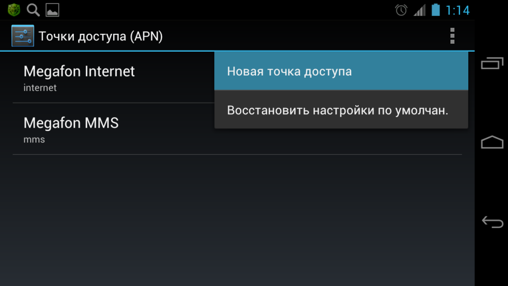 На Андройд версии 4 и выше зайдите в раздел «Настройки», перейдите в меню «Другие сети» → «Мобильные сети» → «Точки доступа» и создайте новую точку доступа нажав на «+» в правом верхнем углу.