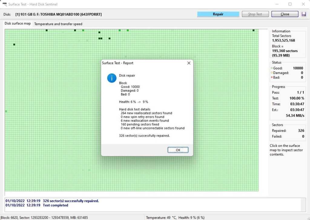 И ещё один нюанс: утилита хорошо справляется со своими задачами, с поиском плохих секторов и исправлением ошибок. Но если она работает с диском, который используется системой, то на тех участках, которые отведены под используемые операционной системой файлы, исправление будет невозможным. В отчёте это будет видно – количество найденных и исправленных секторов совпадать не будет.