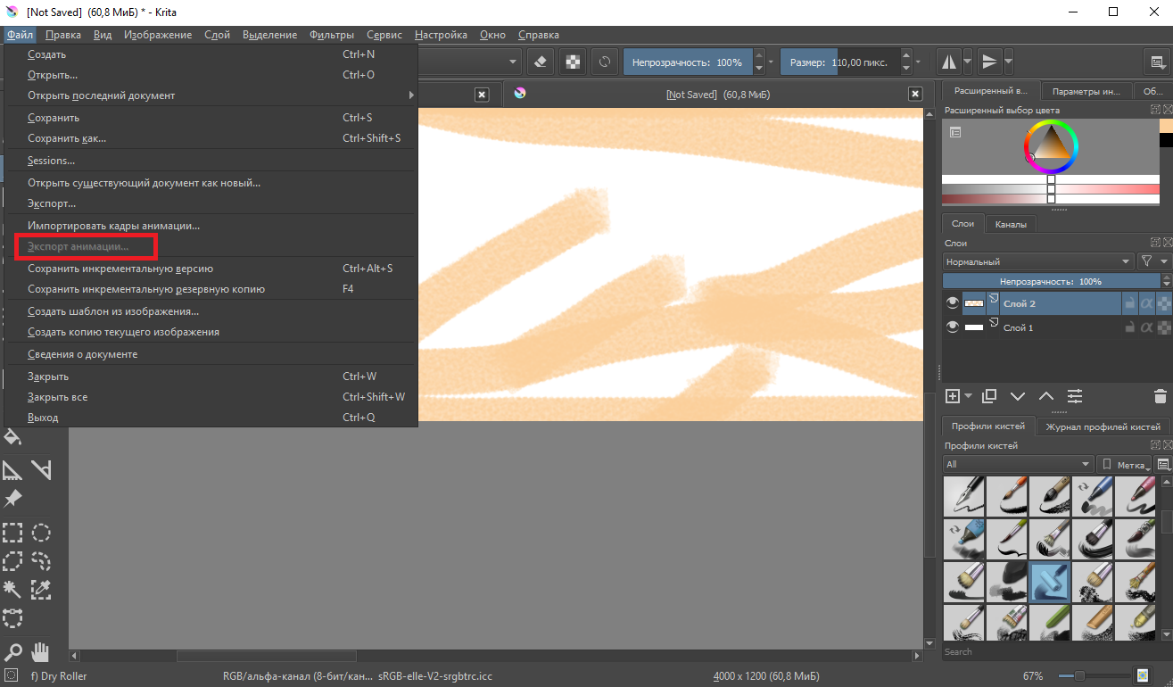 Сохранение анимации в Krita