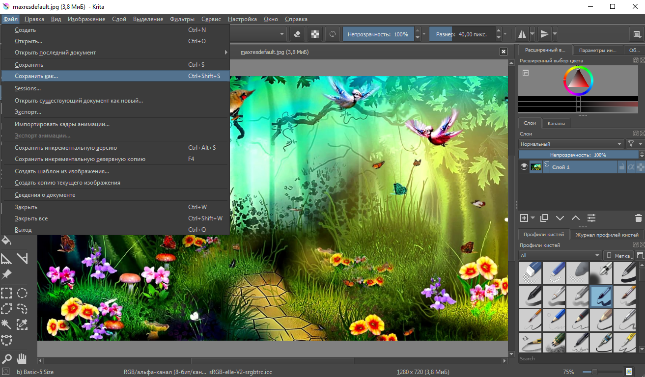 Сохранение файла в Krita