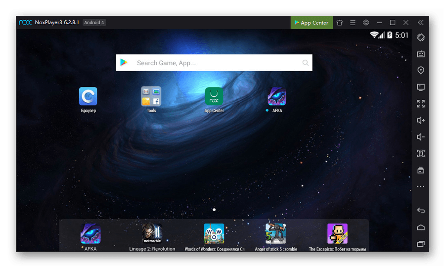 Лучше всего использовать Nox App Player для эмуляции платформы Android 4.4.2, так как именно эта версия ОС требует минимального количества ресурсов. Минусом здесь стало отсутствие возможности запуска некоторых, преимущественно требовательных, игр и приложений.