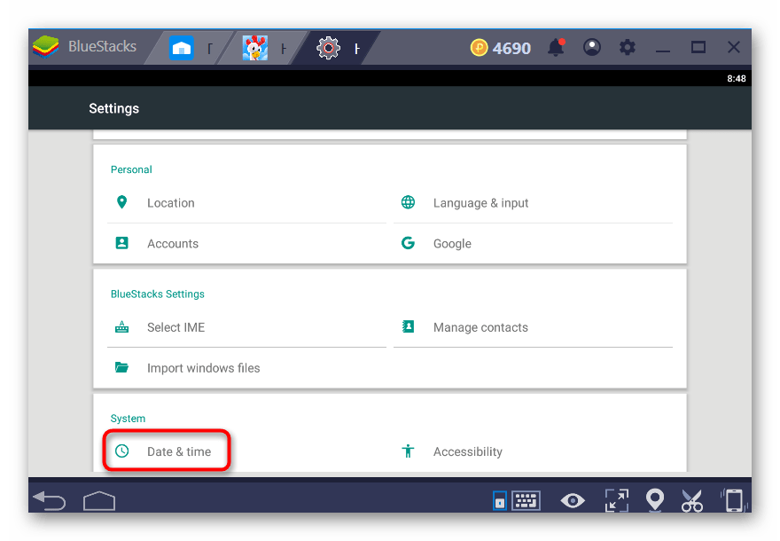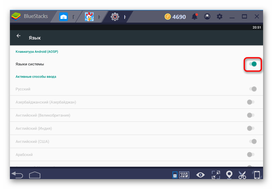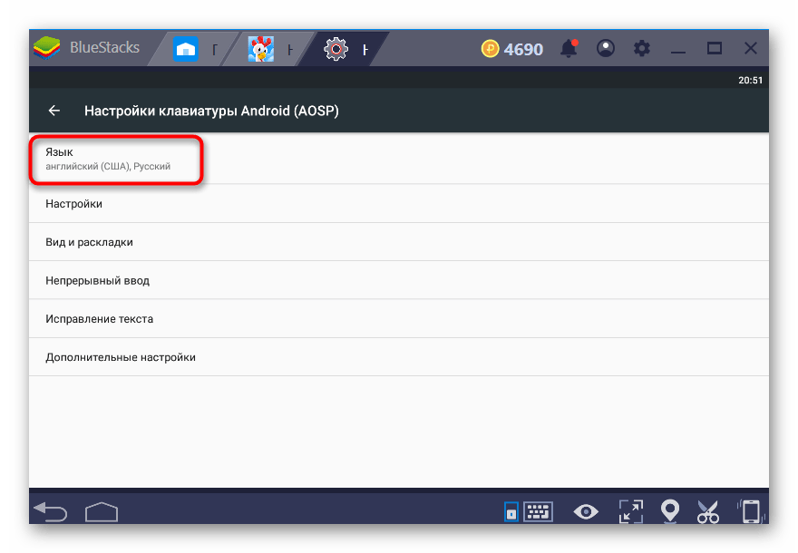 Способ 1: Смена языка меню Android в BlueStacks