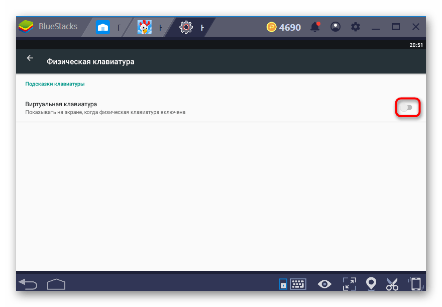 Не забывайте, что изначально виртуальная клавиатура отключена, поэтому чтобы пользоваться ей, в меню «Языки и ввод» перейдите в «Физическая клавиатура».