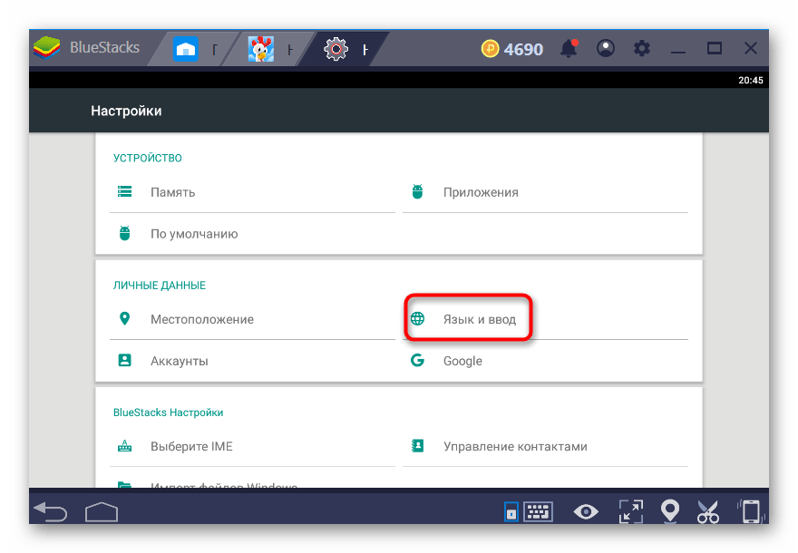 Меняем язык в BlueStacks