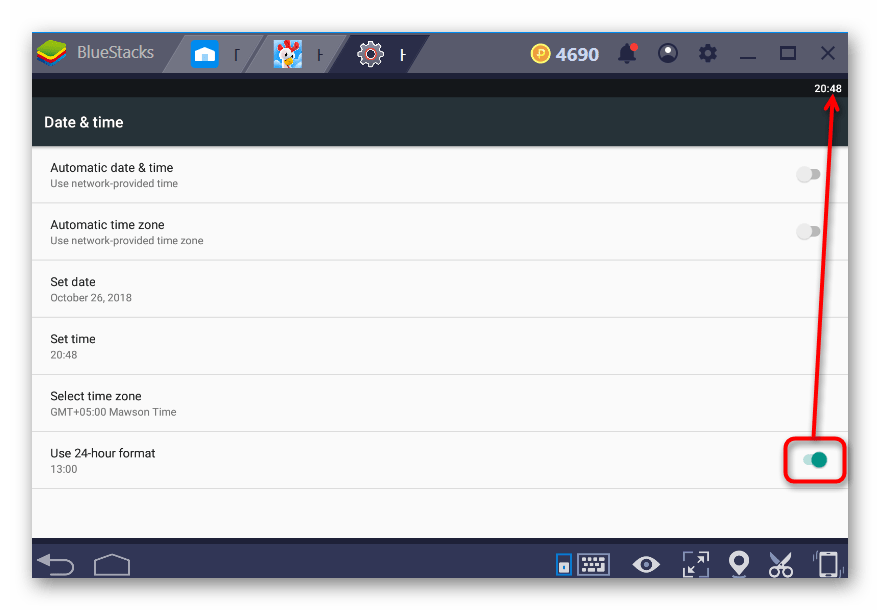 Переключите параметр «24-часовой формат» и удостоверьтесь, что время стало выглядеть по-прежнему.
