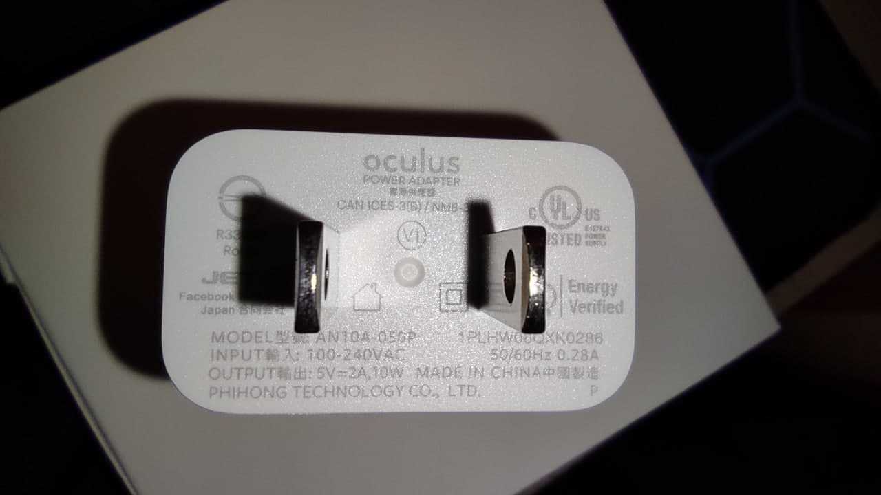 Вилка на родном зарядном устройстве Oculus Quest 2. Тут же можно глянуть и характеристики зарядного блока