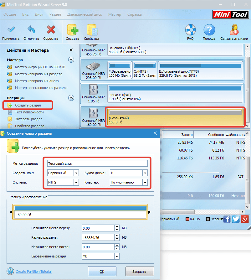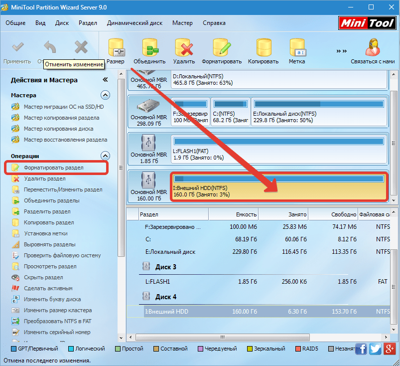 MiniTool Partition Wizard: как сделать раздел на USB-флешке