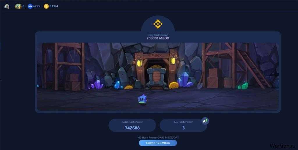 Это шахта, в которой находятся все купленные персонажи, отсюда они добывают MBOX. Курс этих токенов постоянно меняется, об этом расскажем позже. Весь смысл игры сводится к тому, что нужно собирать больше шахтеров и просто получать с них прибыль