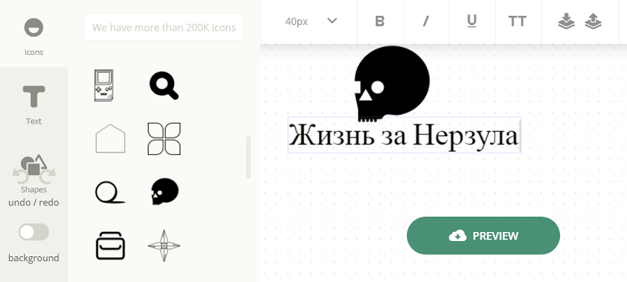 Бесплатно скачать готовую работу можно только в плохом качестве, а использовать на сайте – с указанием ссылки. Чтобы пользоваться сервисом, регистрация не нужна. Создаете логотип – получаете ссылку, по которой можно зайти позже и отредактировать исходник.