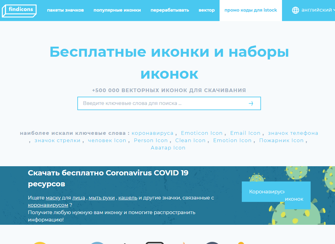 Страшно сказать, но этот сайт был создан в далеком 1994 году и демонстрировал тогда 30 иконок. С тех пор количество значков возросло до нескольких сотен тысяч, а сайт стал одним из популярных мест для поиска нужных миниатюр. Это можно сделать как с помощью обзора категорий, так и поиска по тегам.