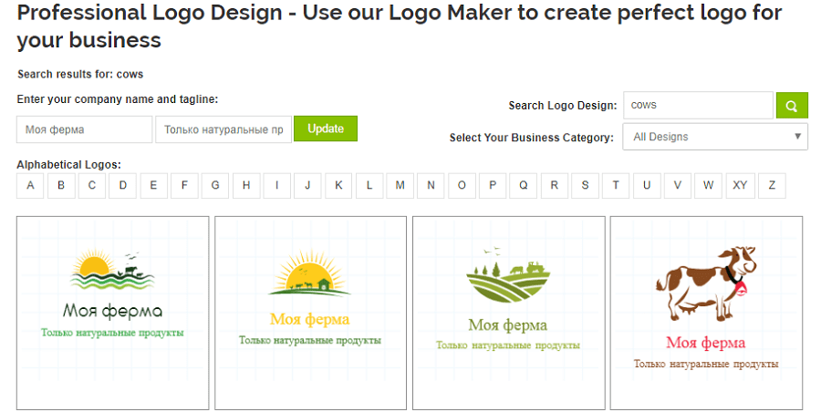 Designimo – онлайн-сервис, позволяющий создать логотип просто и быстро. Достаточно ввести название компании и слоган, указать категорию отрасли и выбрать подходящий вариант. Если перебирать всю галерею неудобно, можно найти дизайн по ключевому слову.