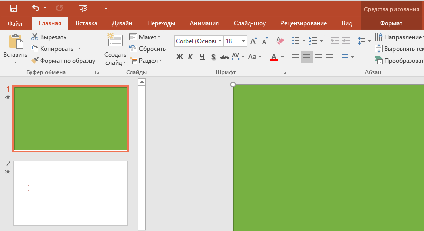 Для добавления бордюра на другие слайды, выберите вашу форму и затем кликните кнопку «Копировать» на вкладке «Главная» (или просто нажмите Ctrl+c).