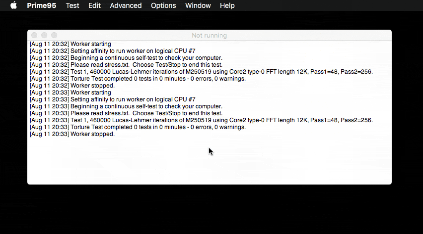 Интерфейс Prime95 не особо дружелюбен, к тому же для нормально тестирования надо знать, что и как нужно запустить. Если у вас обычный Mac, а не Хакинтош, то лучше используйте Blender.