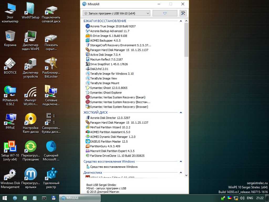 Список полезных инструментов Windows PE 7 Sergei Strelec: