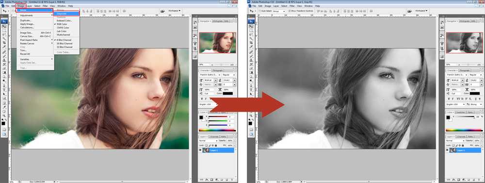 Вышеописанные способы легки в исполнении, но всё же чёрно-белое изображение нас прежде всего привлекает контрастностью на высоком уровне, глубиной. Как в Фотошопе сделать чёрно-белое изображение, чтобы при том оно было высокого качества ? Здесь недостаточно просто обесцветить, нужно воспользоваться несколькими корректирующими слоями насыщенности цвета. Оригинальное изображение при таком варианте не изменяется. Следуйте такому алгоритму: