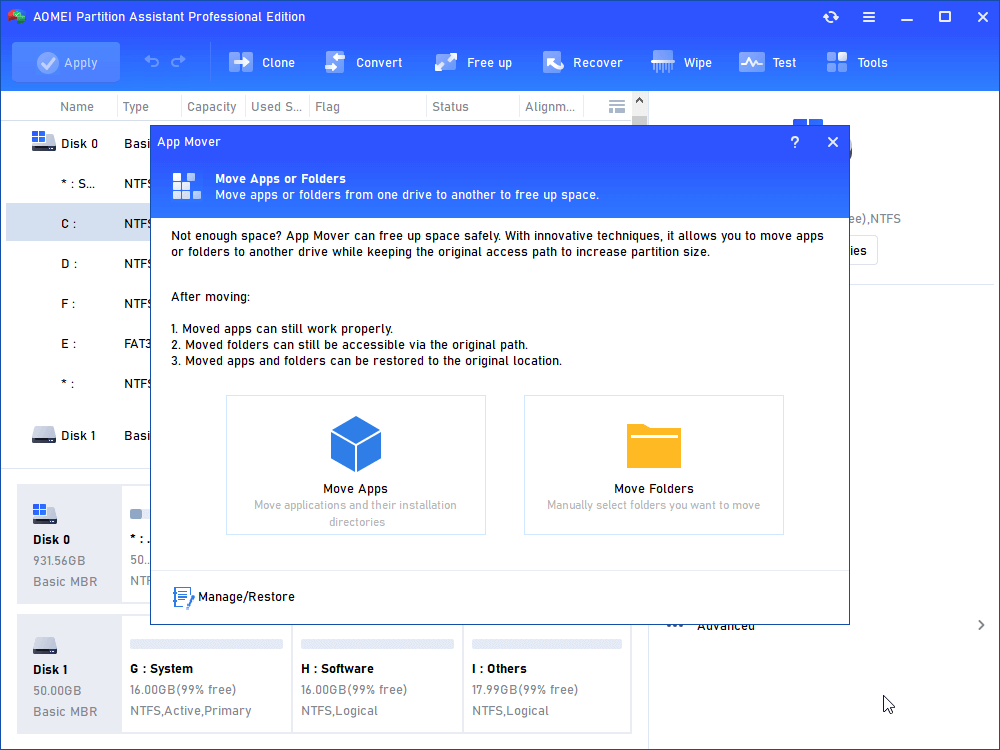 Очень просто, без удаления и последующей переустановки приложений, решить вышеописанную проблему поможет небольшая бесплатная программа FreeMove . Ее основная функция – перенос на другие диски любых папок, включая те, в которых установлены различные приложения. Перенос осуществляется таким образом, что функционал приложений полностью сохраняется.