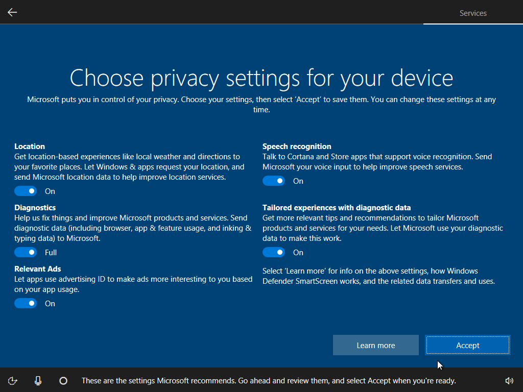 After a few time windows, 10 will install. And it will ask for some setting to configure windows for you.