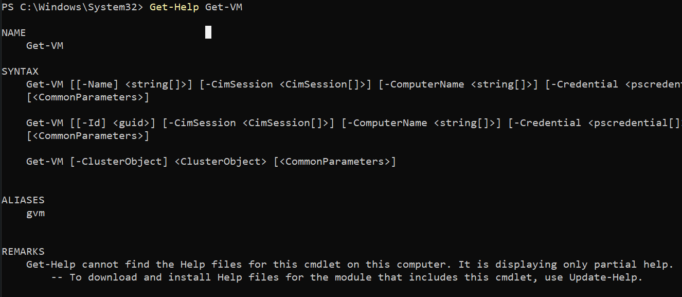 2. Run the cmdlet you picked from step one to PowerShell. For instance, the Get-VM cmdlet below fetches and prints information about your VM, as shown below.