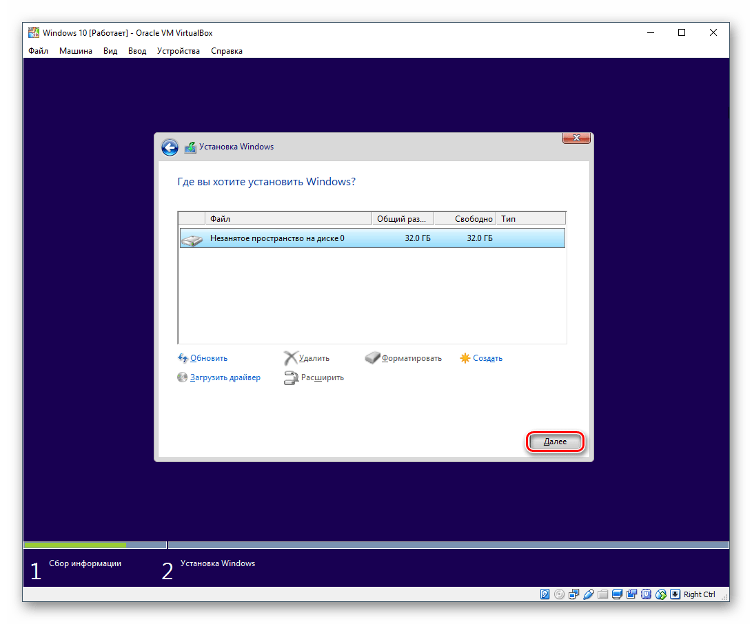 Обратите внимание, что VirtualBox советует выделять минимум 32 ГБ.