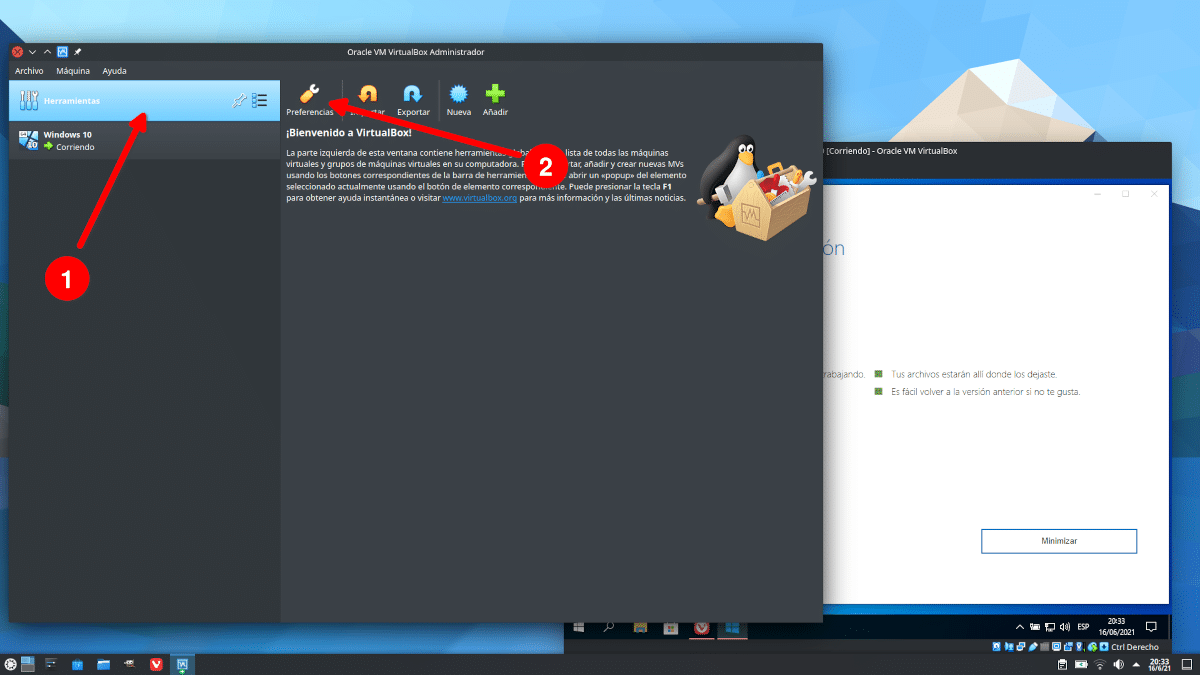- Теперь, когда никакая виртуальная машина не установлена, хотя ничего не происходит, если она уже установлена, мы переходим в Инструменты / Настройки. Это должно быть в общих настройках, иначе мы не увидим опцию расширений.