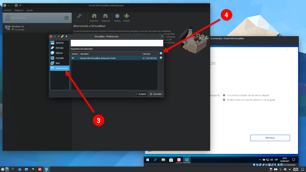 - После установки, чтобы не запутаться, мы собираемся установить VirtualBox Extension Pack. Этот пакет необходим для обеспечения доступа к USB, а также к другому оборудованию, например веб-камере. На этом этапе мы загрузим пакет из ссылку. Мы также можем сделать это со страницы, которая появляется в любом поиске, но если мы это сделаем, мы загрузим последнюю версию, и это может вызвать проблемы с установленным нами VirtualBox. Вам необходимо загрузить пакет расширений, соответствующий версии нашего VirtualBox.
