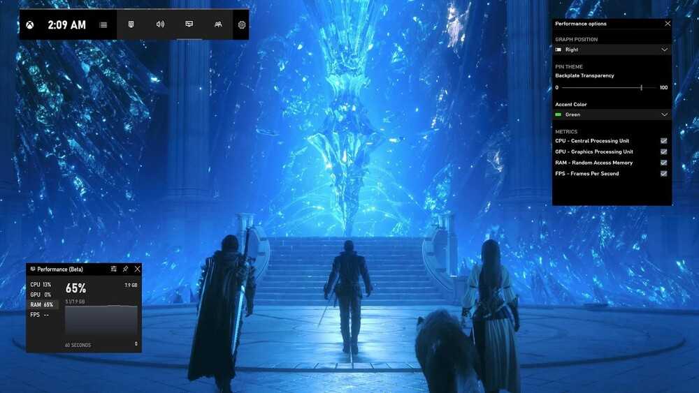 Нажмите сочетание кнопок Win + G. Это откроет оверлей, позволит настроить параметры работы программы.