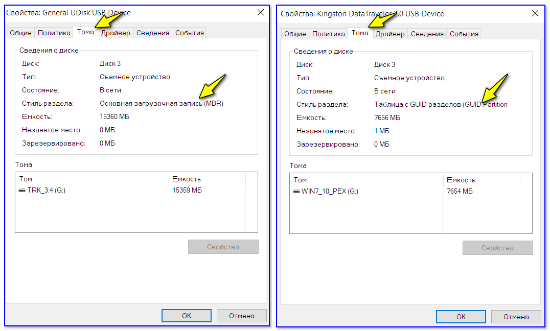 MBR (слева) — GUID (справа)