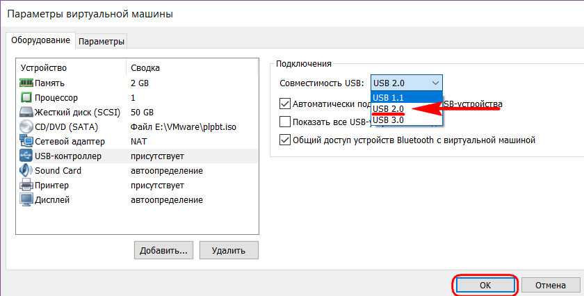В графах, показанных на скриншоте ниже, из выпадающего перечня выбираем тестовую машину (ту, которую мы только что настроили) и флешку.