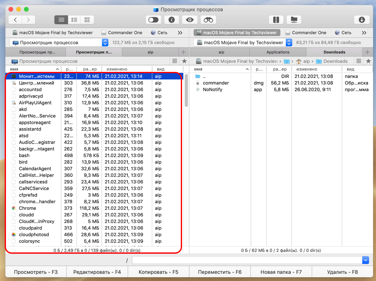 Commander One (Mac) поддерживает файлы ZIP, в которых вы можете сжимать и извлекать файлы и папки. Кроме того, он имеет встроенный просмотрщик файлов, совместимый, среди прочего, с изображениями, текстом, мультимедиа и файлами HTML. Другие бесплатные функции включают средства просмотра процессов и отображение списка различных компьютеров в локальной сети.