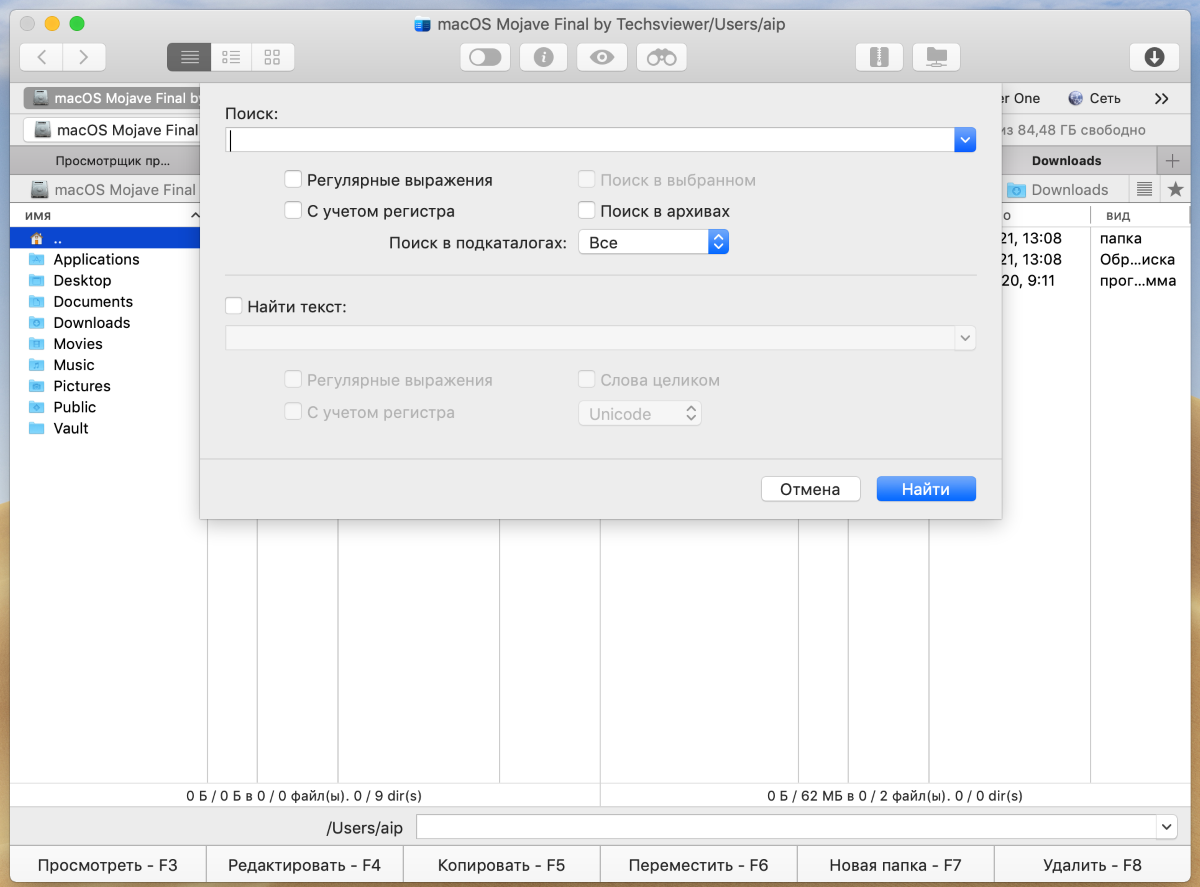Command One (Mac) имеет функцию расширенного поиска с поддержкой RegExp. Вы можете искать содержимое всех папок на вашем компьютере. Кроме того, вы даже можете искать сжатые файлы на разных дисках. Функции PRO доступны при покупке. К ним относятся FT Manager, Amazon S3, WebDAV, OpenStack, Dropbox, Google Drive, Backblaze B2, Microsoft OneDrive, Mount Android, Mount MTP Devices, Themes, Box Cloud и другие. Этот инструмент можно легко загрузить из Mac App Store.