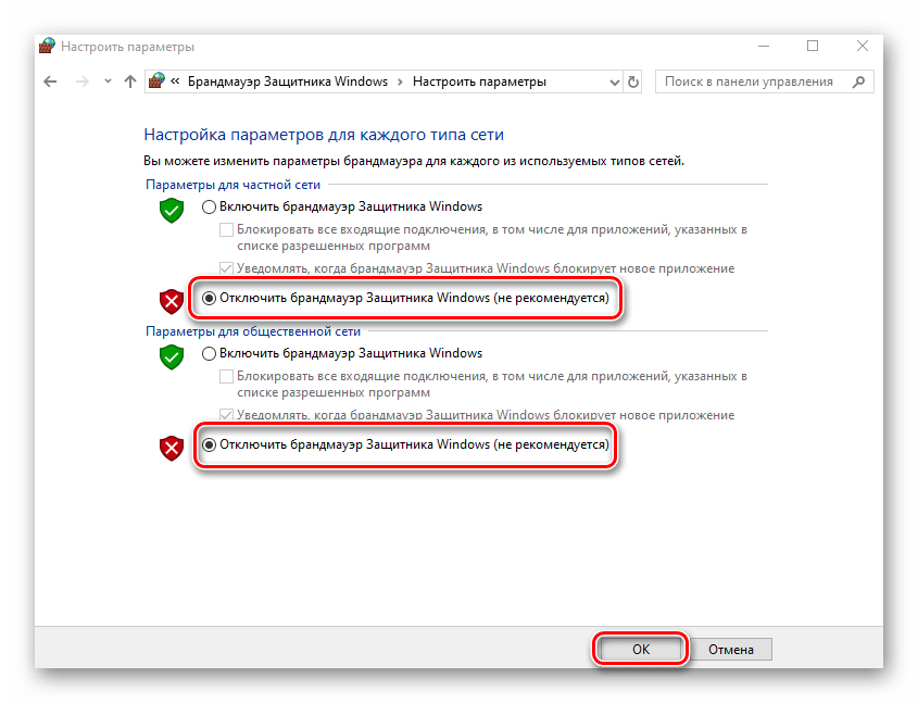 Способ 9: Отключение брандмауэра