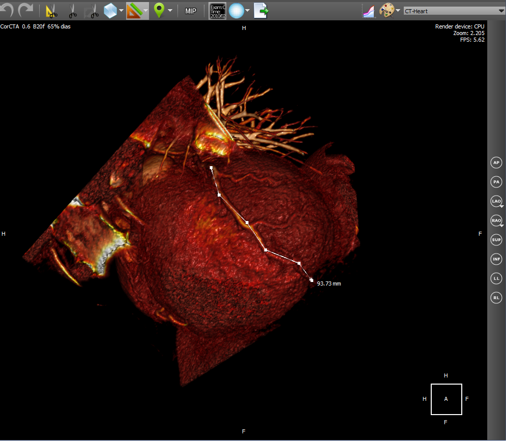 - Различные измерительные инструменты: окружность и эллипс (площадь, плотность тканей в единицах Хаунсфилда), линейка (длина сегмента), транспортир (измерение нормальных углов и углов Кобба) и другие.