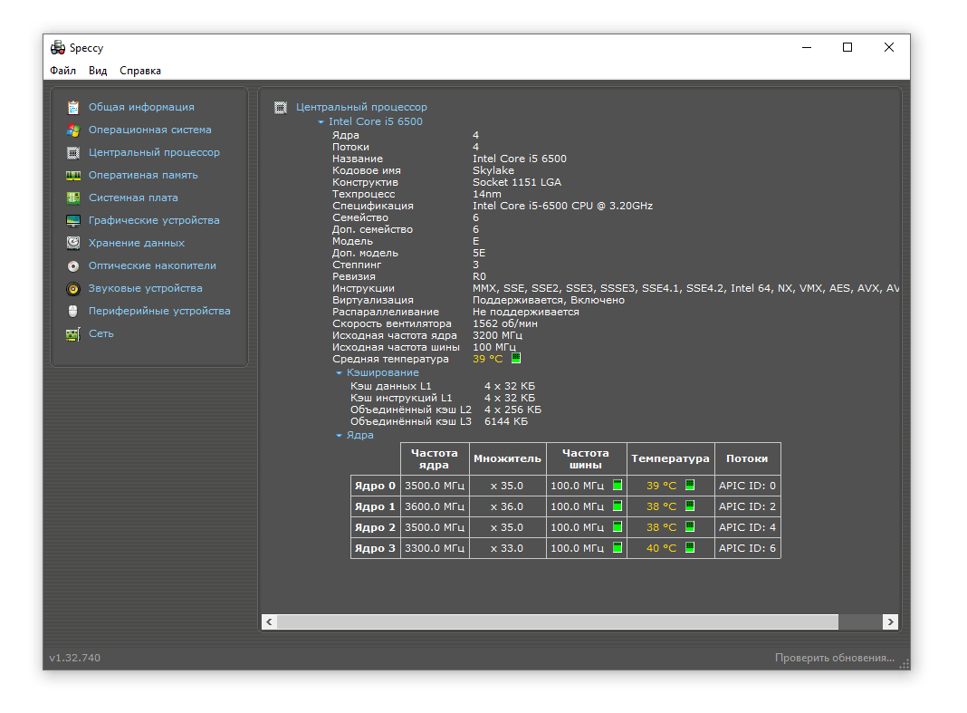 Как измерить температуру процессора программой Speccy