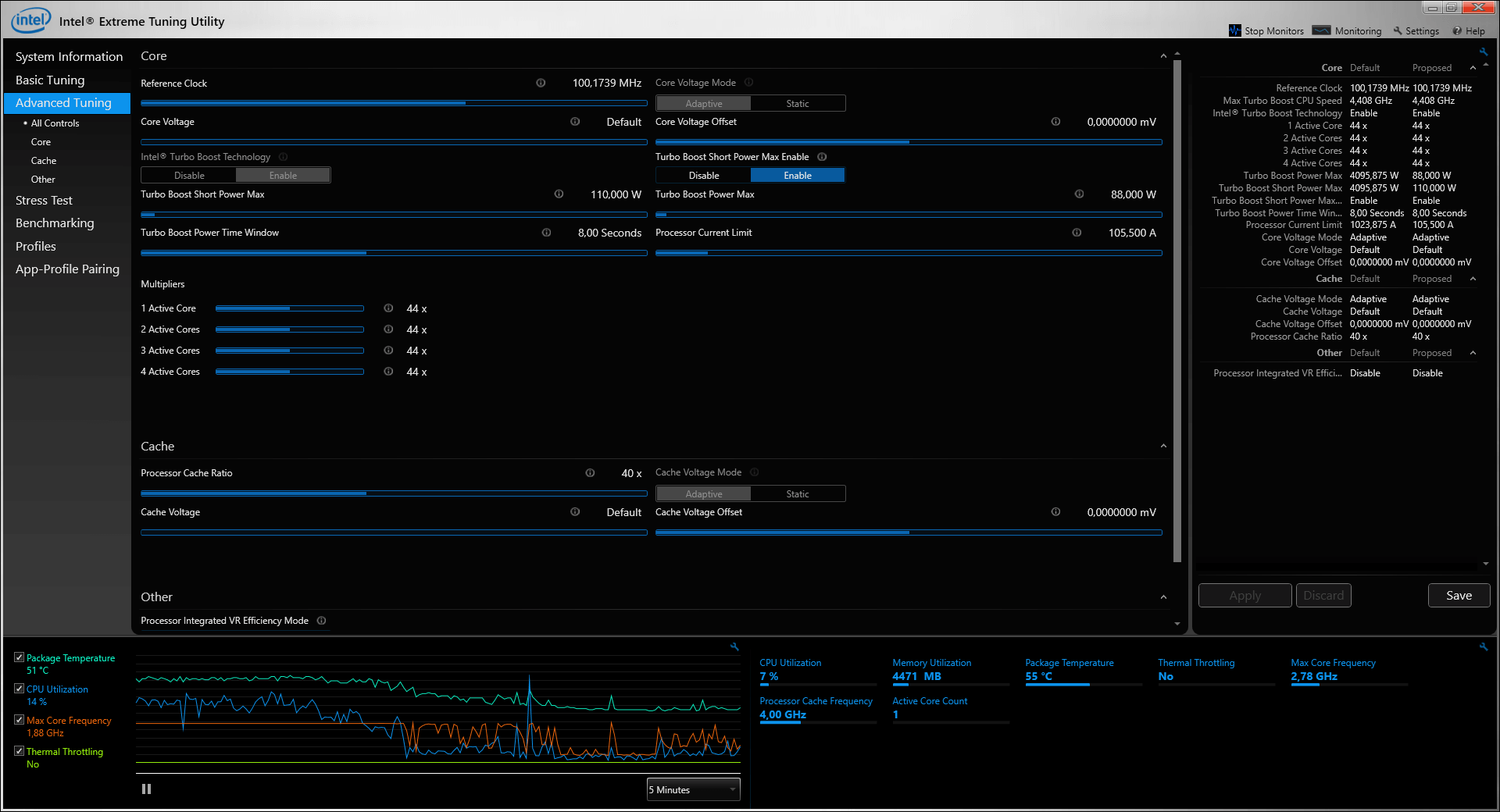 Tuning and benchmarking options are also available on Intel XTU, which makes it ideal for those toying with overclocking their Intel CPUs. The program provides comprehensive information about your processor like utilization, frequency, temperatures and whether it detected thermal throttling.