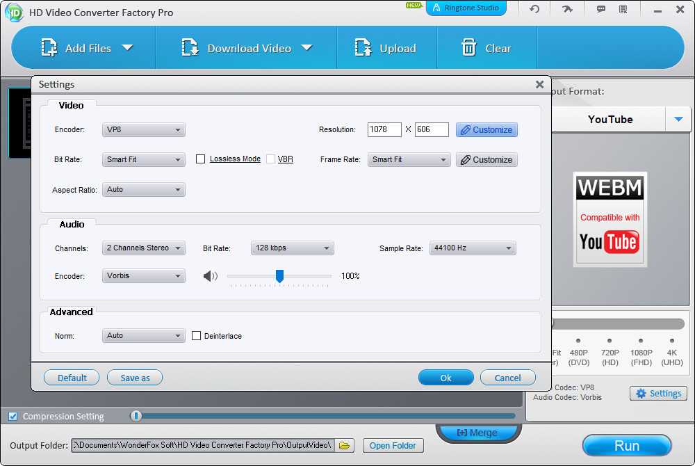Если же вам нравится смотреть видео в определенном формате, битрейте и с определенной частотой кадров – выберите свой формат и затем нажмите на кнопку Settings внизу окна формата. Здесь открывается другая сторона HD Video Converter Factory Pro для опытных пользователей. Изменяйте всё, что нужно, нажимайте Ok и жмите Run для старта конвертирования!