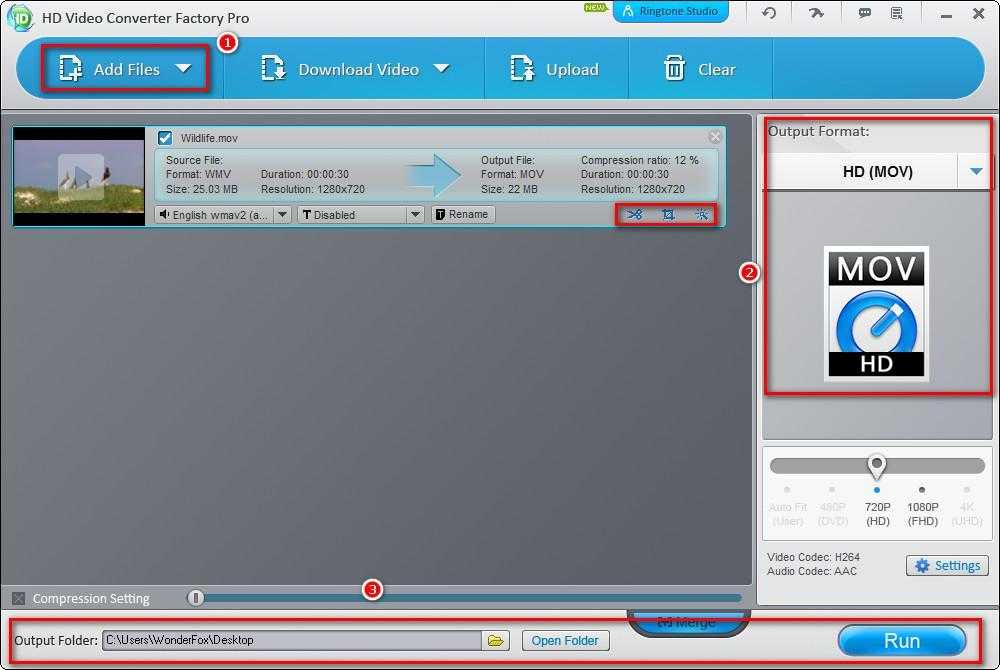Когда дело доходит до видео, логика сжатия практически идентична. Это уменьшает размер видео практически без заметной потери качества. HD Video Converter Factory Pro использует 5-кратное сжатие, что значительно уменьшает размер видеофайла. Но в то же время качество видео неотличимо от оригинала.