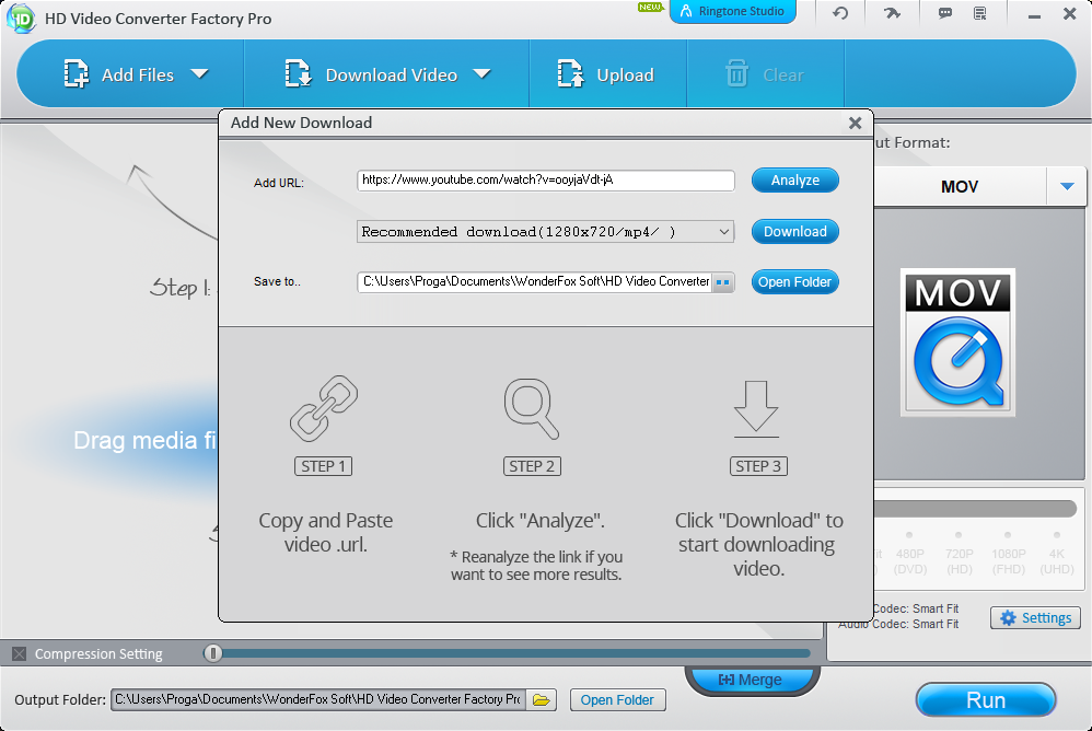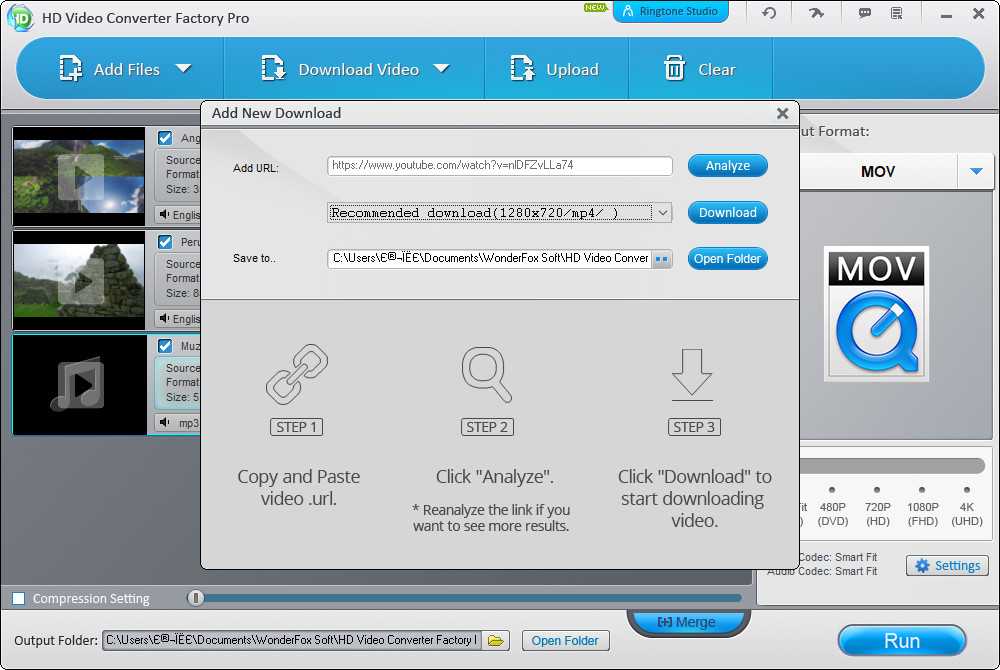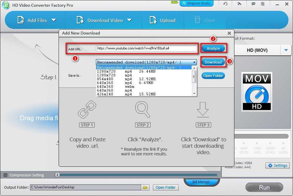 Besides converting videos, WonderFox HD Video Converter Factory Pro also makes it easy to download videos from various online video sharing sites. What you need to do first is just copy and paste the video URL you want to download. Then, you need to click the “Analyze” button and wait until the analysis is finished. Finally, you need to click on the “Download” button. Downloading online videos is very simple and you can finishing this process just with three steps.