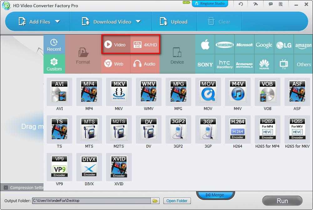 WonderFox HD Video Converter Factory Pro поддерживает преобразование видео даже до 4k. Он поддерживает все популярные видеоформаты, аудиоформаты и устройства.