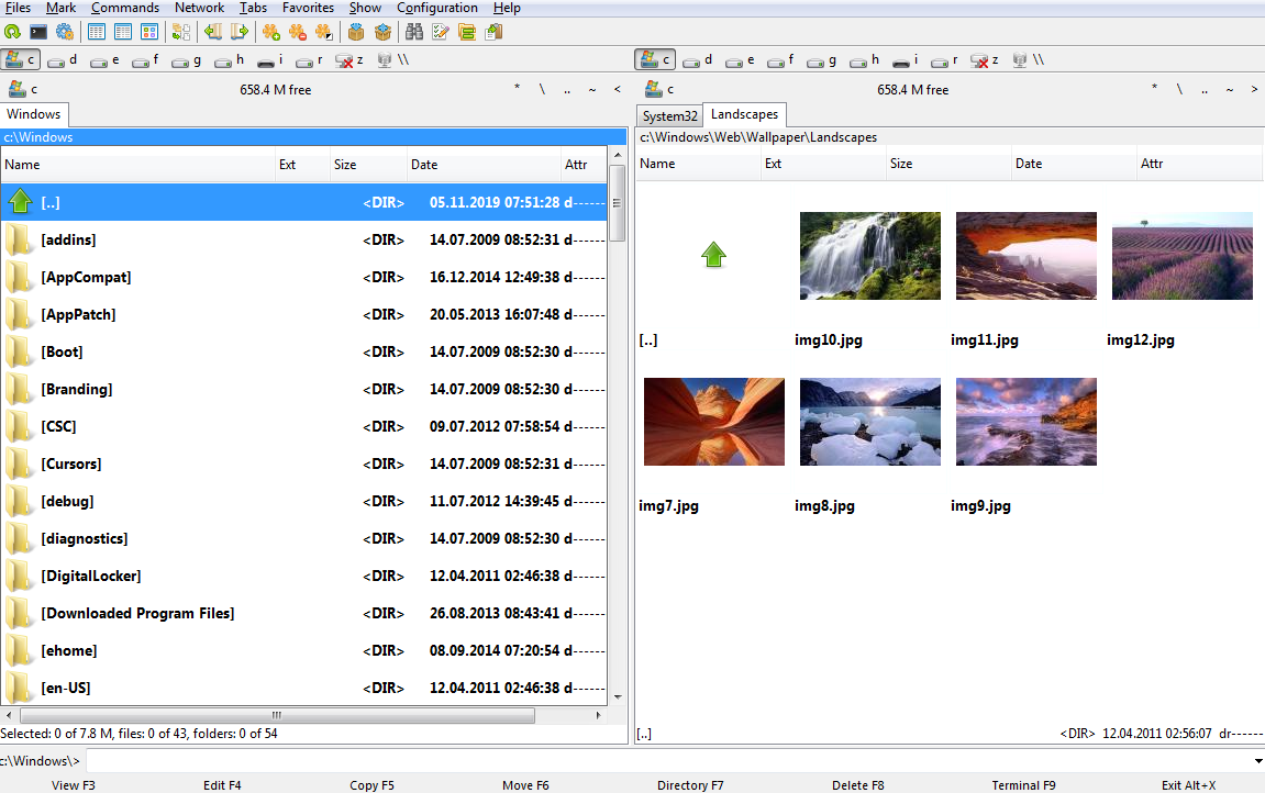 An advanced file manager for Windows 10. Total Commander may not have the most beautiful interface, but its advanced features and dual file windows make file management a snap. The main interface consists of two windows where you can open two folders and exchange and manage files between them seamlessly.