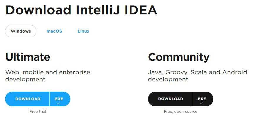- Перейдите на страницу загрузки IntelliJ IDEA.