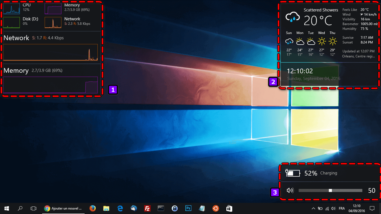 Некоторые из гаджетов сразу же будут отображены на вашем рабочем столе: