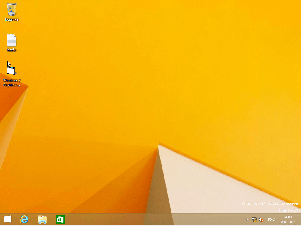 И видим рабочий стол Windows 8.1 Корпоративная, обновление windows 7 до windows 8.1 произошло, на рабочем столе присутствуют мои файлы.