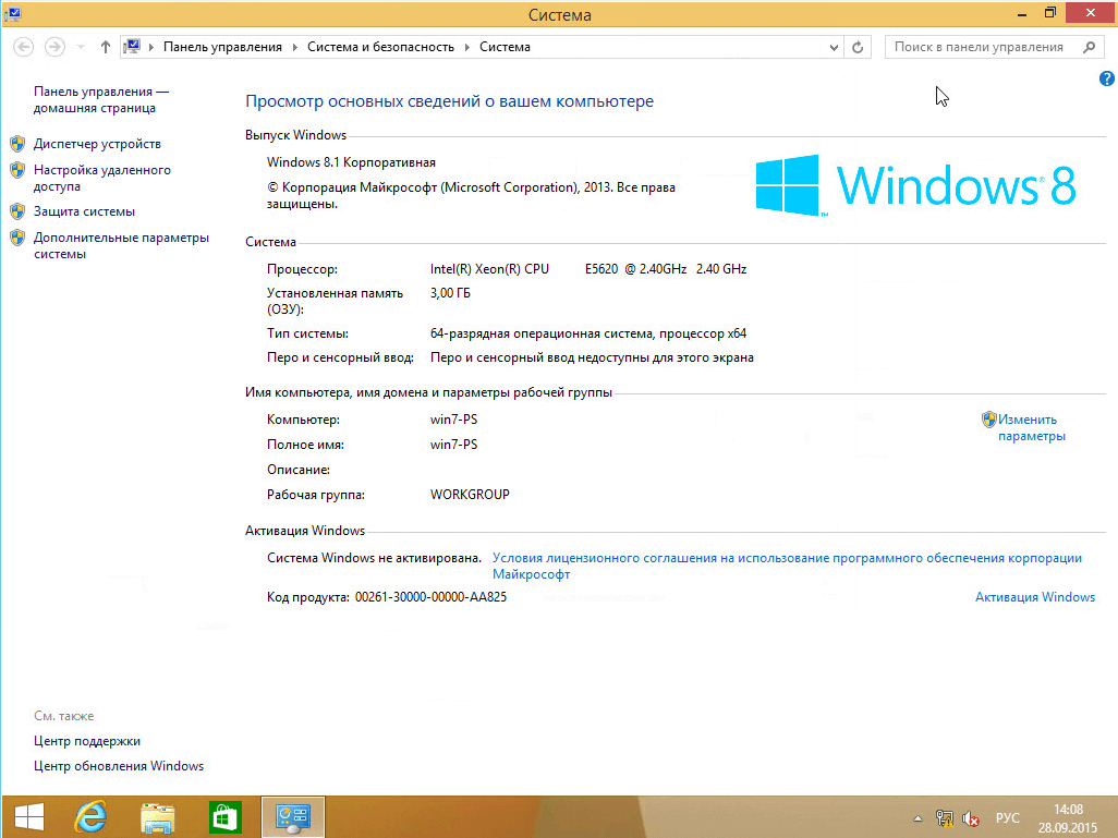 И зайдя в свойства системы мы видим прежнее название и редакцию Windows 8.1 Корпоративная