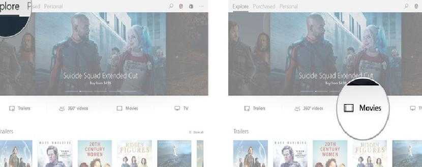 Приложение Movies & TV отображает подборку мультимедиа, которое, по вашему мнению, вы хотели бы посмотреть, в том числе трейлеры к фильмам и видео на 360 градусов. Все, что вы видите, доступно для скачивания, аренды или бесплатно.