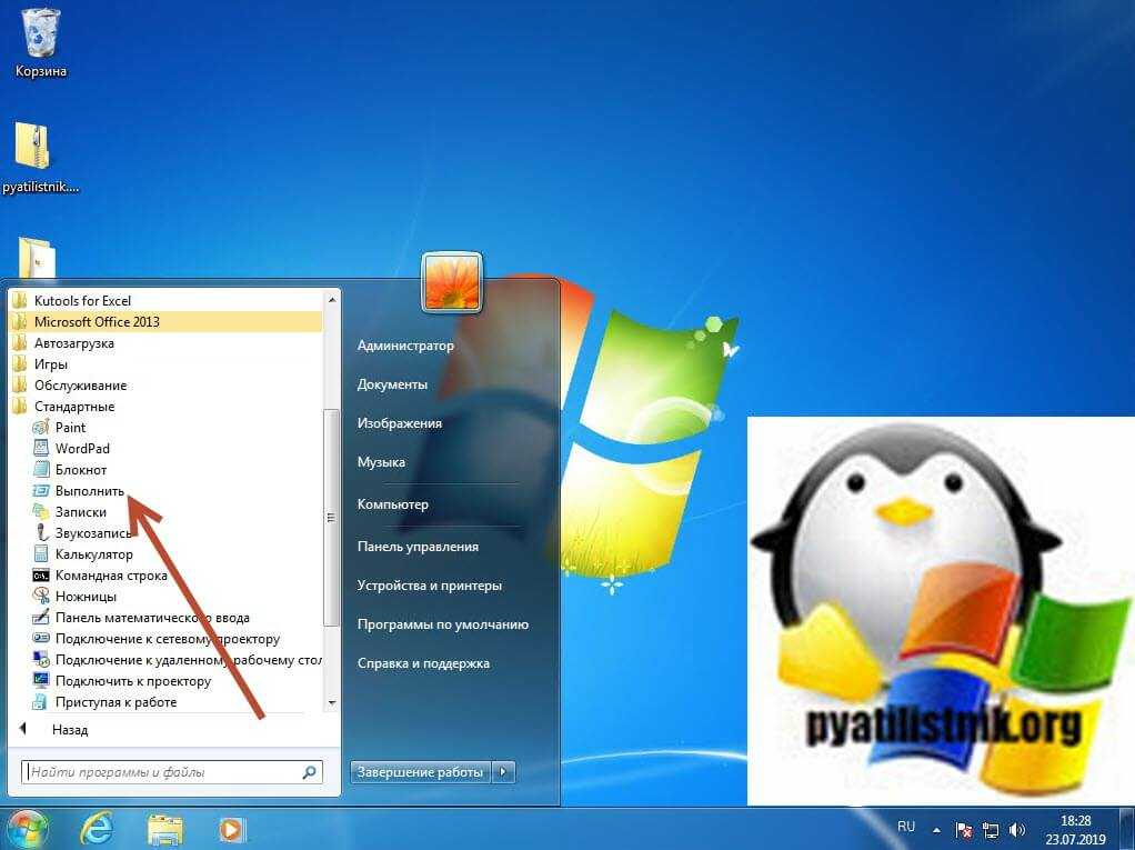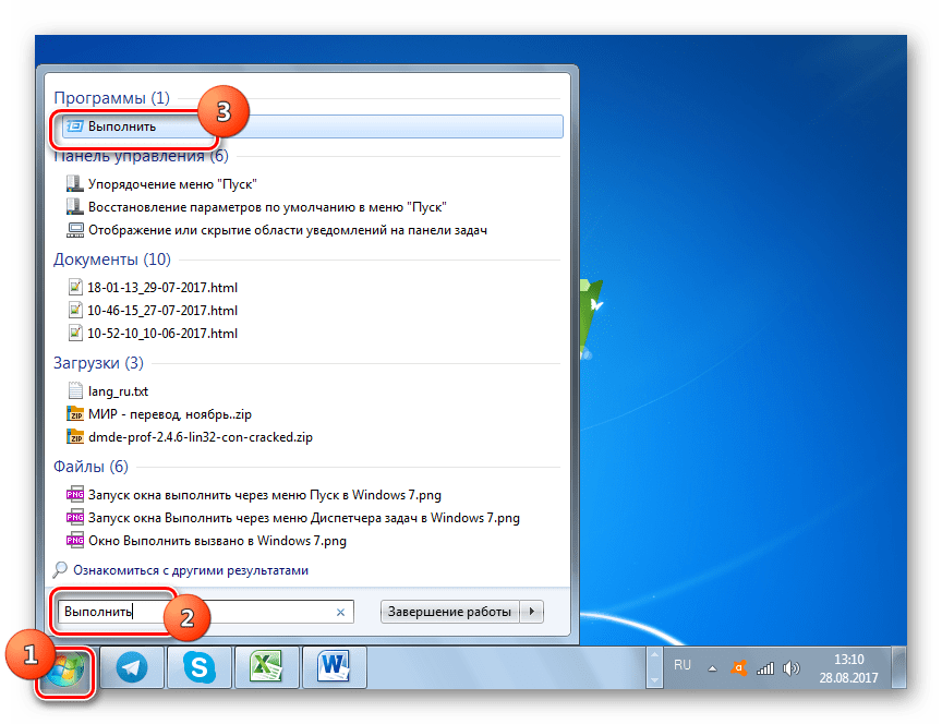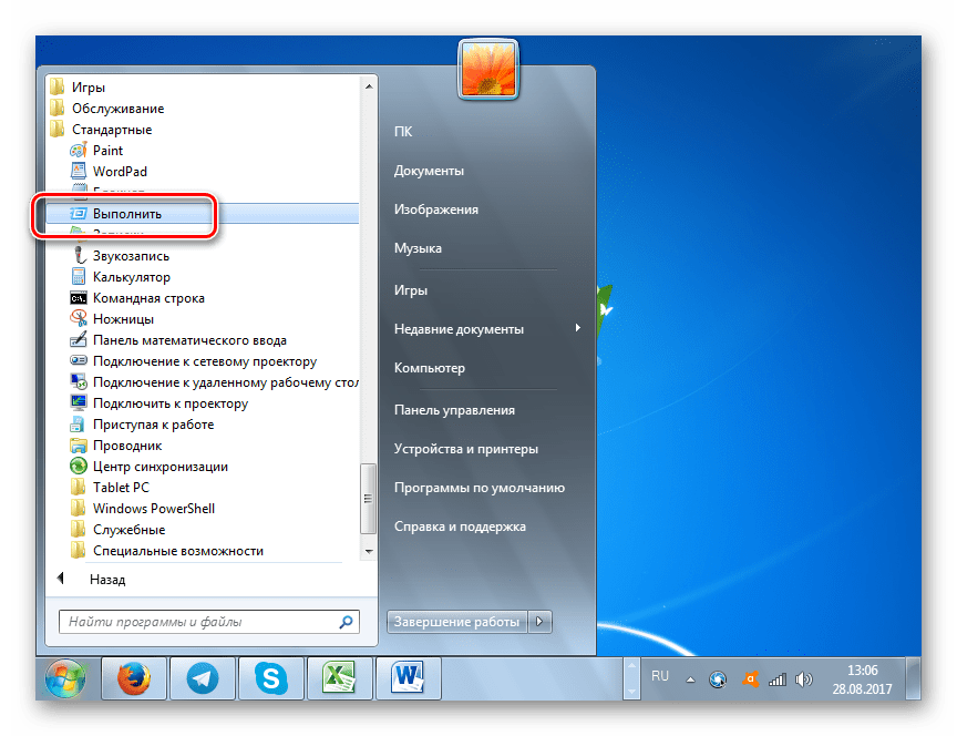 Команда «Выполнить» в Windows 7
