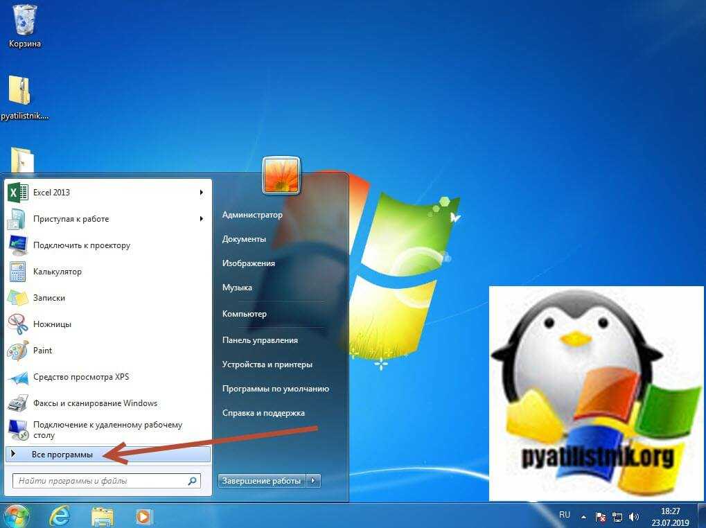 Если у вас Windows 7 или Windows Server 2008 R2, в пуске нажмите «Все программы».