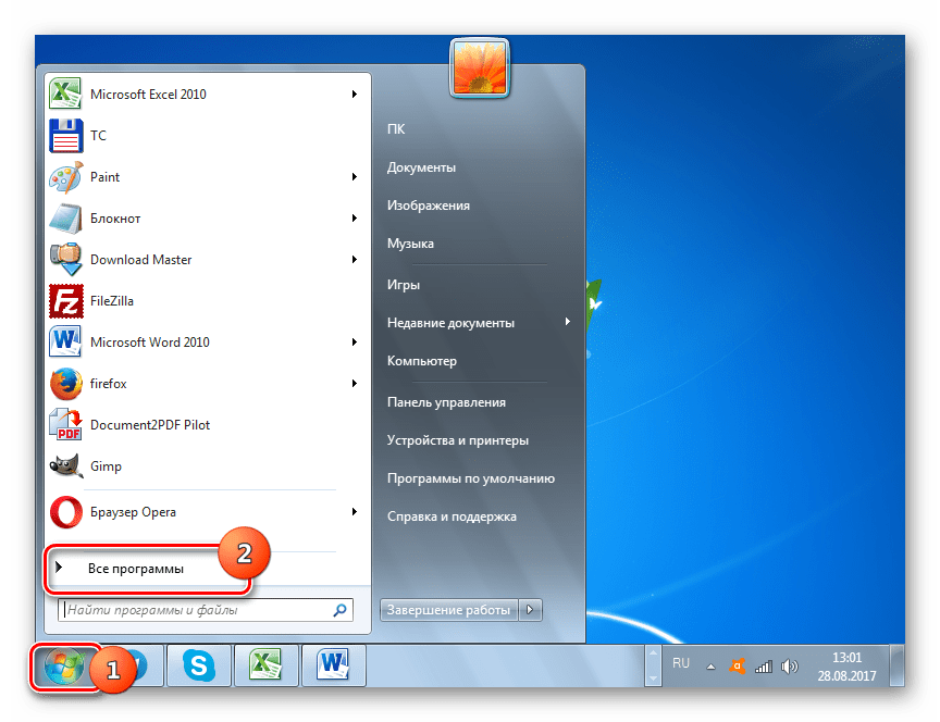 - Щелкайте по кнопке «Пуск» и выбирайте «Все программы».
