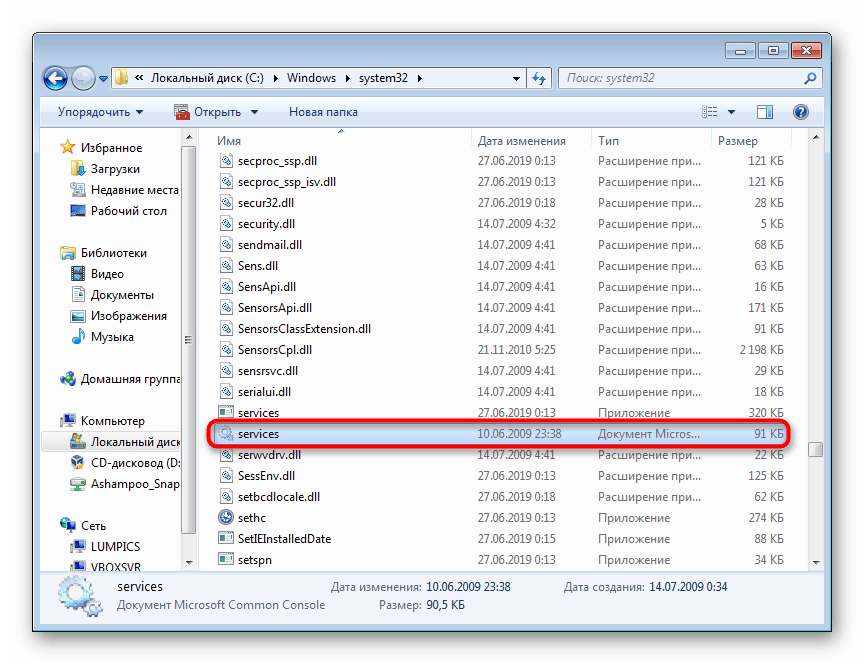 Важно! Папку с «services» удастся найти через Проводник. Необходимо лишь активировать этот сервис и задать в поисковой строчке путь, то есть написать: C:\Windows\System32