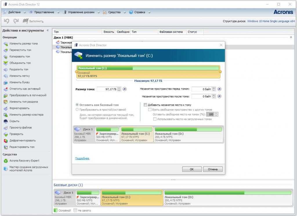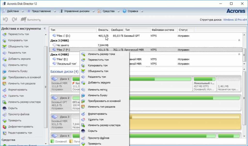 Инструмент по работе с дисками зарекомендовал себя, как надежное средство, помогающее избавиться от многих проблем. Пользователь сможет манипулировать дисковыми разделами как угодно. Нужно разделить том? Не вопрос. Необходимо собрать несколько разделов в один? Тоже возможно. Все операции, которые невозможно выполнить в штатном инструменте Windows – «Управление дисками», доступно в Acronis Disk Director 12.