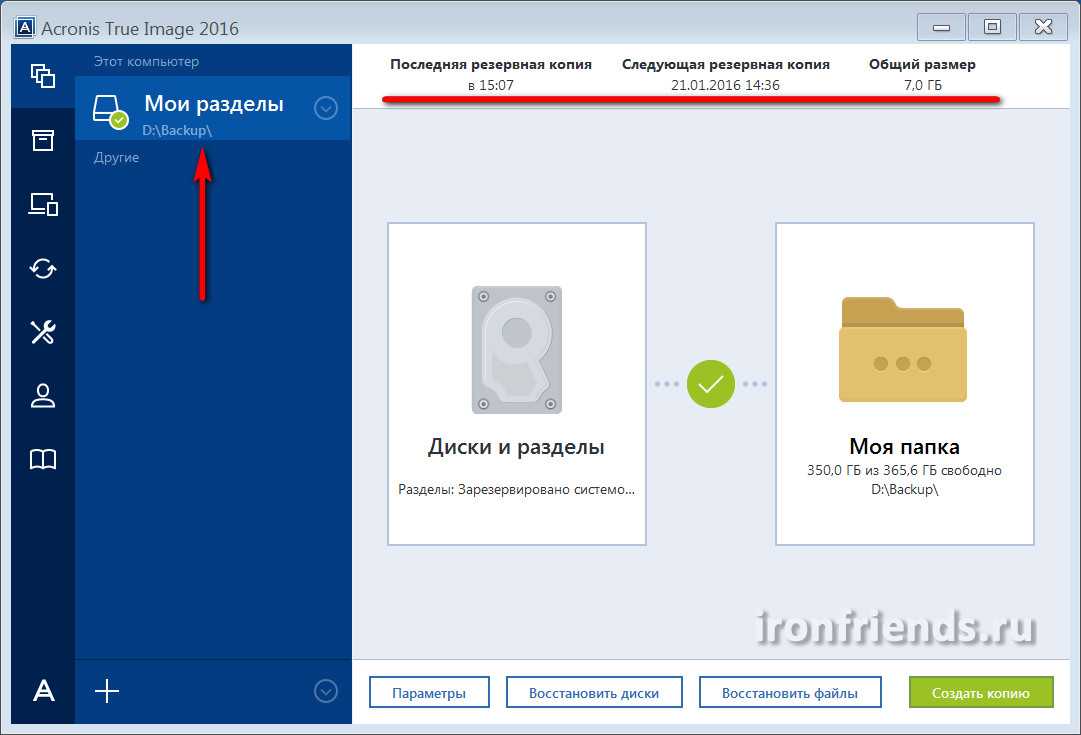 – позволяет делать резервные копии отдельных папок и файлов на выбранный носитель или в сетевое хранилище. Удобно тем, что файлы сжимаются в архив, который может быть защищен паролем. Недостатком является доступ к архиву с файлами только с помощью самой программы и нецелесообразность хранить в таком архиве большие несжимаемые файлы, такие как видео, образы дисков и т.п.